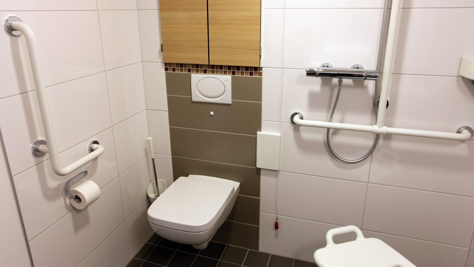 Conformément à ce concept, des accessoires sanitaires du système 800 de HEWI ont été utilisés. Les éléments utilisés, tels que les tabourets et les distributeurs de savon, s'intègrent dans les chambres, qui font plus penser à un spa qu'à une salle de bain de soins. Dans les salles de bains privées des résidents, une grande importance a également été accordée à une atmosphère familiale. "La sécurité est synonyme d'une attitude centrale face à la vie pour les personnes qui choisissent le Saint John Senior Center. Nous répondons à cette confiance, en particulier dans l'environnement à haut risque de la salle de bains des résidents, avec des produits pratiques et attrayants de HEWI. Ils sont une symbiose parfaite entre nos normes de qualité élevées et la perfection de la forme et de la fonction", déclare Thomas Berens. La gamme sanitaire LifeSystem de HEWI a été utilisée pour soutenir les habitants